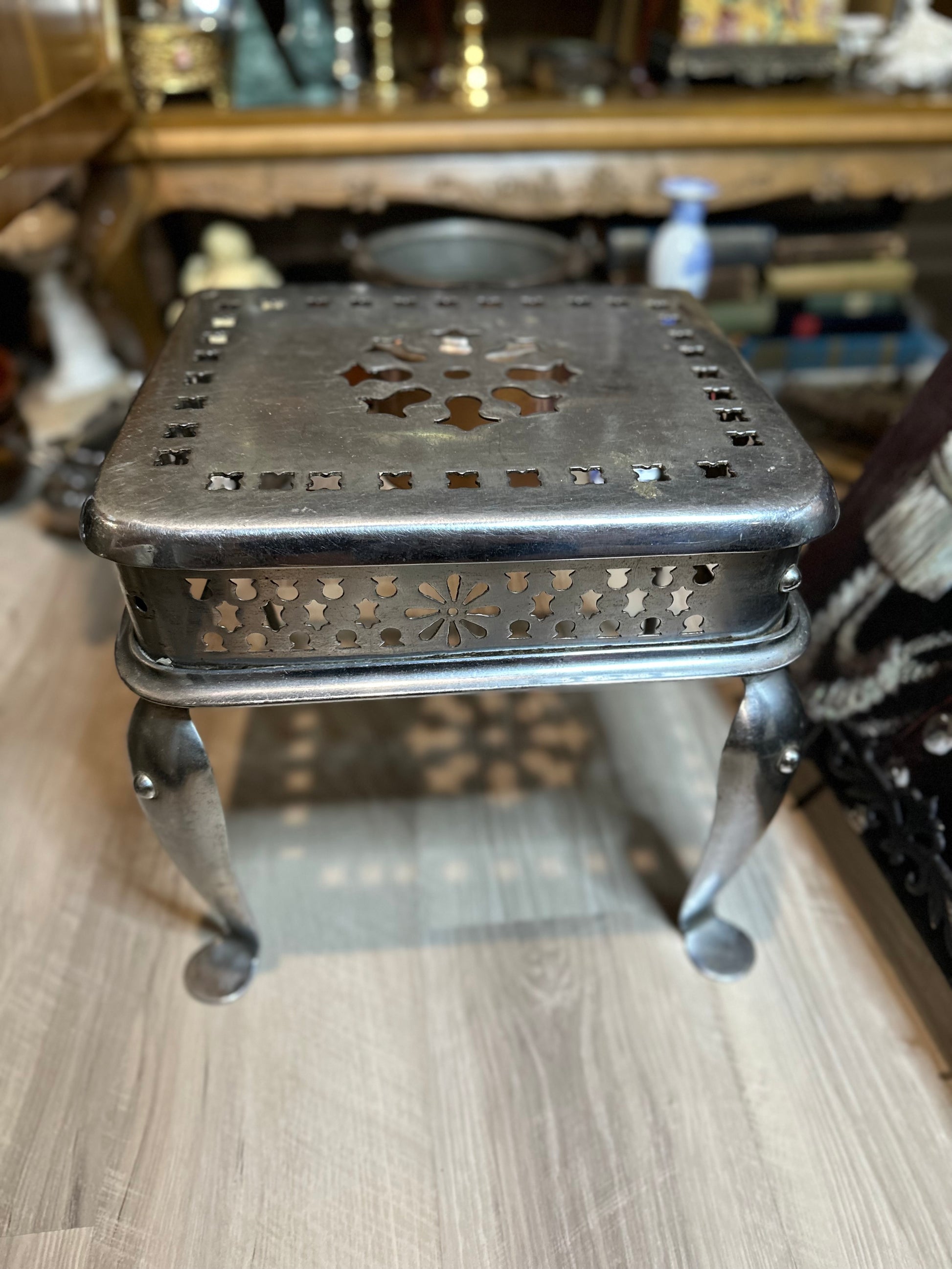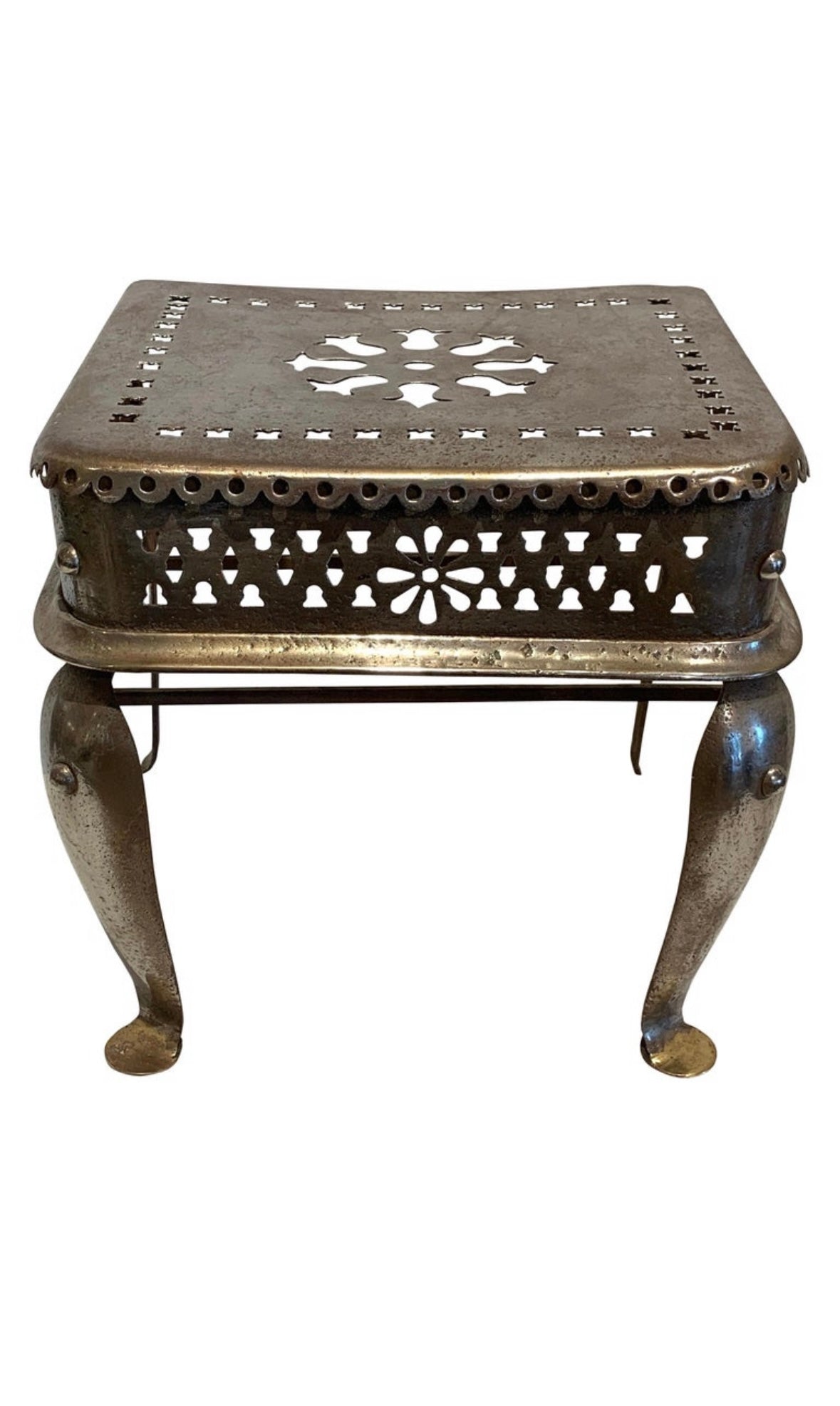 English Paktong Fireplace Footman with all over pierced decoration. Raised on four pad-footed legs. Early 1800s. Georgian Period. Also makes a great step for the kitchen or to get into bed.